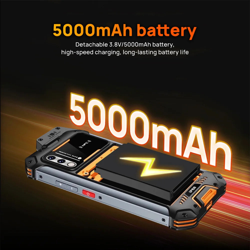 Le téléphone est résistant à l’eau, à la poussière et aux chocs (IP68 / MIL-STD) et dispose d’une batterie amovible de 5000 mAh, offrant une autonomie fiable sur une journée de travail.
